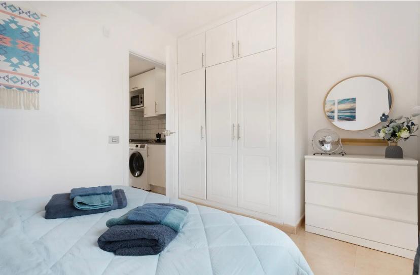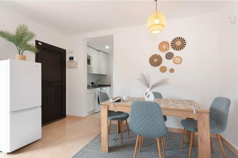 - kitchen with coffee Machine, fridge freezer, Kettle, Toaster, stovetop for cooking, hairdryer, microwave and washing machine